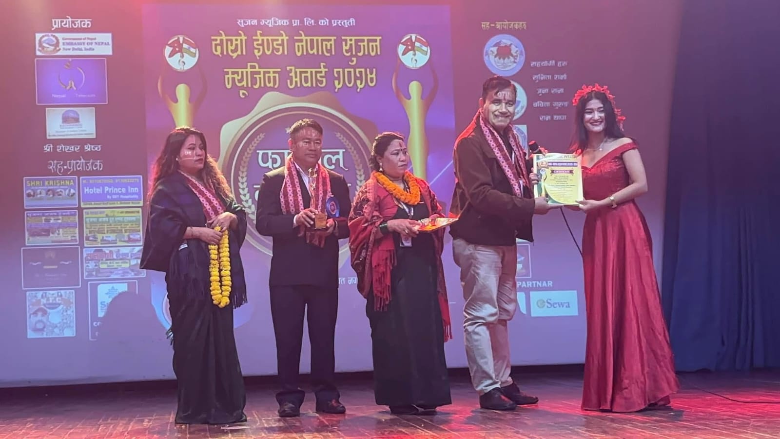 इन्डो नेपाल सुजन म्युजिक अवार्ड २०२४’ मा विभिन्न बिषयहरुमा बिजेता कलाकारहरुलाई अवार्ड प्रदान गरिएको छ ।