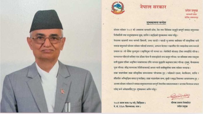 मकवानपुर । बागमती प्रदेश प्रमुख दीपक प्रसाद देवकोटाले बिहीबार परेको सोनाम ल्होछारको अवसरमा शुभकामना व्यक्त गरेका छन् ।