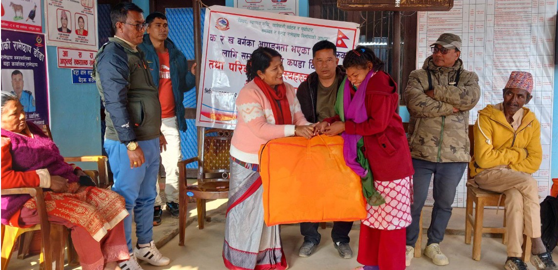 रामेछाप । रामेछाप नगरपालिकाले अपाङ्गता भएका ज्येष्ठ नागरिकलाई न्यानो कपडा वितरण गरेको छ ।