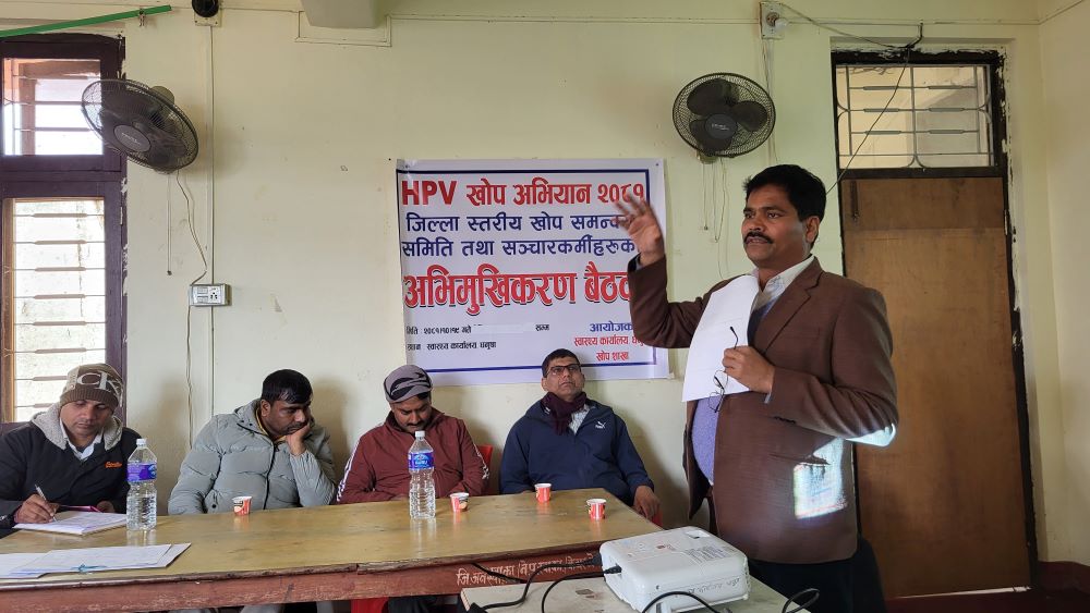 शनिबार जनकपुरधाममा आयोजित एचपीभी खोप सम्बन्धी संचारकर्मीहरुसँगको अभिमुखिकरण कार्यक्रममा प्रमुख यादवले जिल्लामा माघ २३ गतेदेखि पहिलो चरणको खोप अभियान संचालन गरिने जानकारी दिए ।