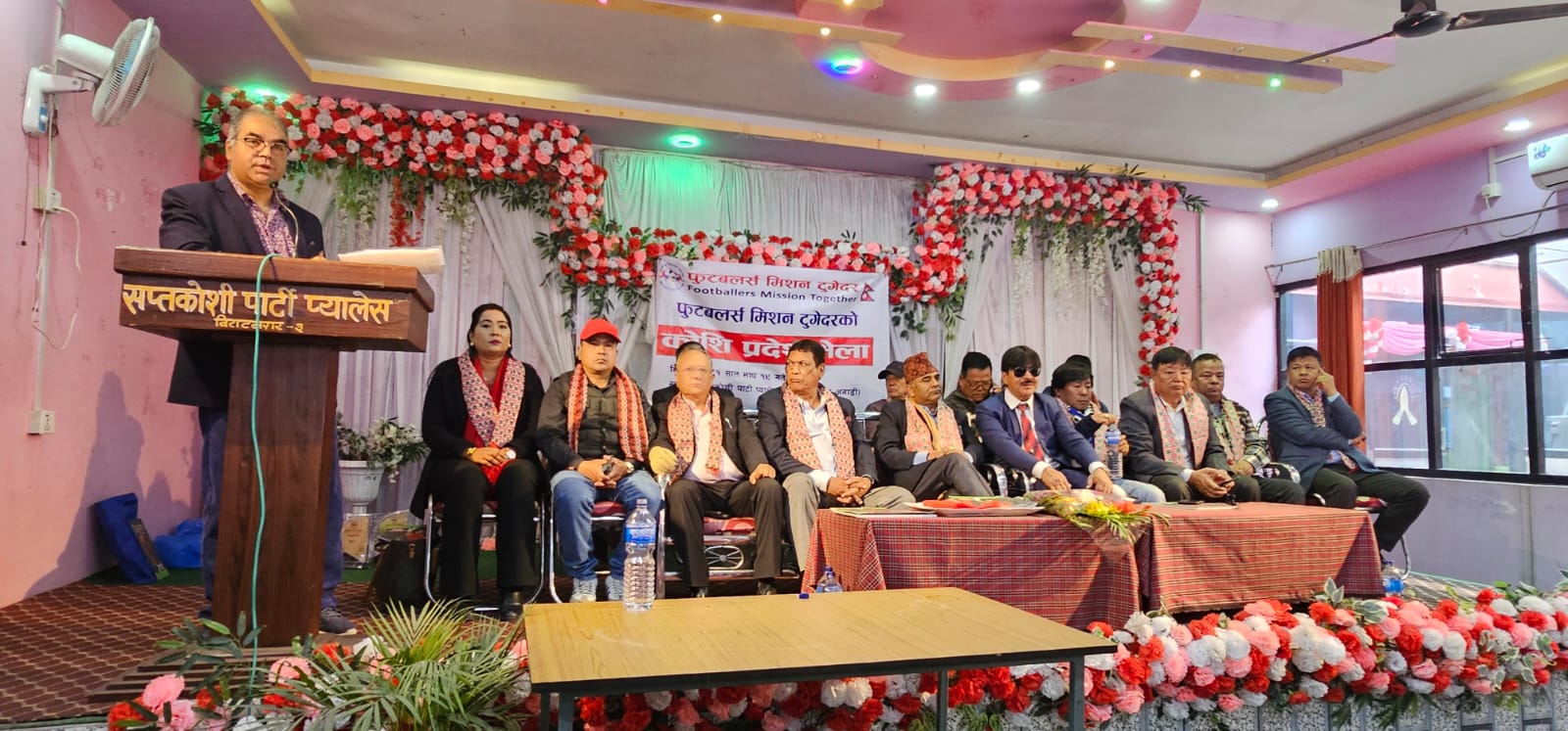 विराटनगरमा शनिबार फुटबलर मिसन टुगेदरका अध्यक्ष अशोक वज्राचार्यको सभापतित्वमा सम्पन्न कार्यक्रममा एन्फाका पूर्व केन्द्रीय सदस्य वसन्त अर्याल, कोशी प्रदेश फुटबल संघका अध्यक्ष किशोर राईले नव गठित समितिका पदाधिकारी तथा सदस्यहरुलाई वधाई सहित सफल कार्यकालका लागि शुभ कामना दिएका थिए ।