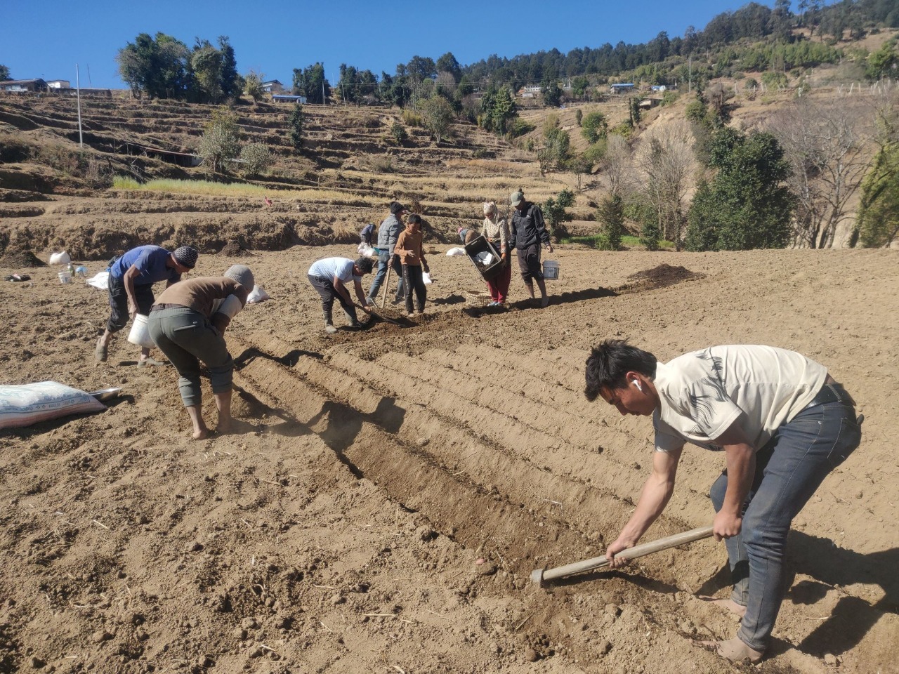 शैलुङ क्षेत्रको दोरम्बा, डडुवा, गौश्वारा लगायतका क्षेत्रका किसानहरू यति बेला आलु रोप्न व्यस्त छन् ।