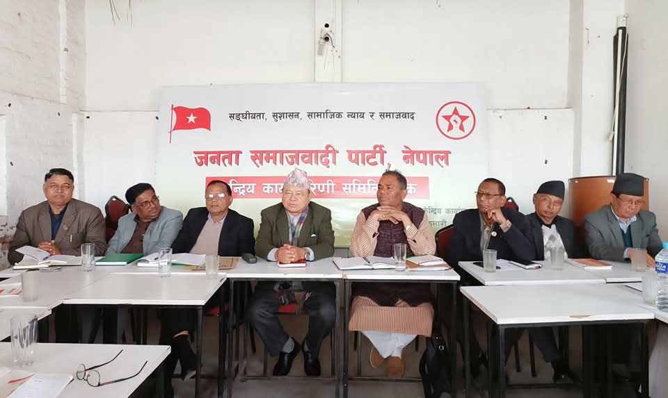 जनता समाजवादी पार्टी (जसपा) नेपालले केन्द्रीय समितिको बैठकका एजेण्डाहरु तय गरेको छ । प्रचार प्रसार तथा प्रकाशन विभाग अनुसार आगामी फागुन १९, २० र २१ गते काठमाण्डौमा बस्ने गरी आह्वान गरिएको पार्टीको बैठकका एजेण्डा तय गरिएको हो । प्रचार प्रसार तथा प्रकाशन विभाग प्रमुख पूर्ण बस्नेतका अनुसार बैठकमा भदौ महिनादेखि पार्टीले सञ्चालन गरेको ‘जनतासँग जसपा नेपाल, आधारभूत सङ्गठन निर्माण अभियान’ को समीक्षा हुनेछ । यस्तै, बैठकमा पालिका समितिको जिम्मेवारीमा खटाइएका केन्द्रीय अभियन्ताहरुले आ–आफ्नो कार्यक्षेत्रमा भएका कार्यप्रगति विवरणको प्रतिवेदन प्रस्तुत गर्ने बस्नेतले जानकारी दिए । यसैगरी वर्तमान राजनीतिक परिस्थिति र पार्टीको साङ्गठनिक कार्ययोजना लगायतका एजेण्डामा बैठक केन्द्रित हुने भएको छ ।