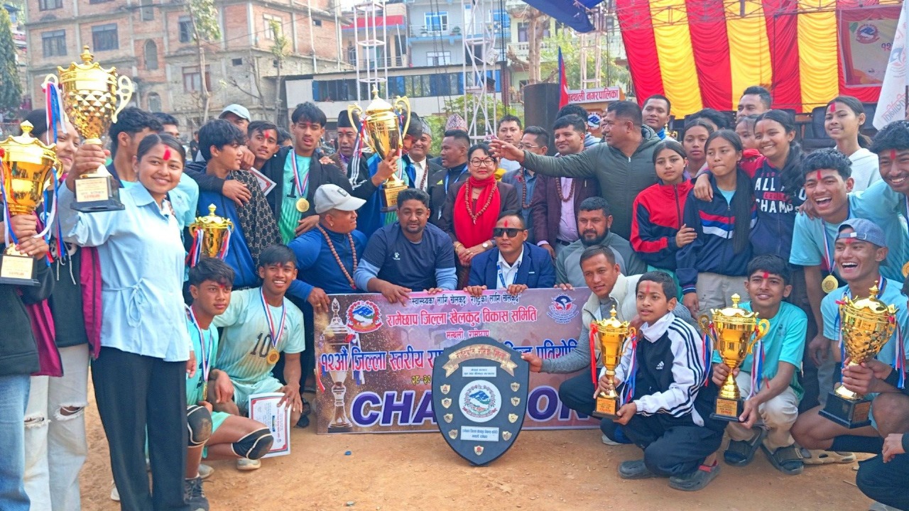 रामेछाप । १२ औँ रामेछाप जिल्ला स्तरीय राष्ट्रपति रनिङ सिल्ड खेलकुद प्रतियोगिताको उपाधि मन्थली नगरपालिकाले जितेको छ ।