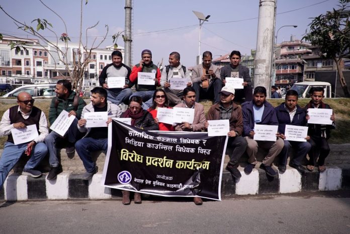 नेपाल प्रेस युनियनले सरकारले ल्याएको सामाजिक संजाल सम्बन्धि विधेयकको विरोध गरेको छ । प्रेस युनियन काठमाडौं शाखाले विहीबार माइतीघर मण्डलामा विरोध प्रदर्शन गरेको हो ।