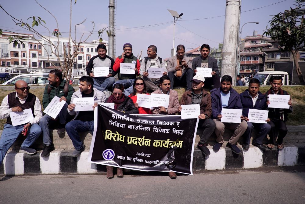 युनियनकर्मीले विहीवार सामाजिक संञ्जाल विधेयक र मिडिया काउन्सिल विधेयक विरुद्ध विरोध प्रर्दशन गरेका हुन् ।