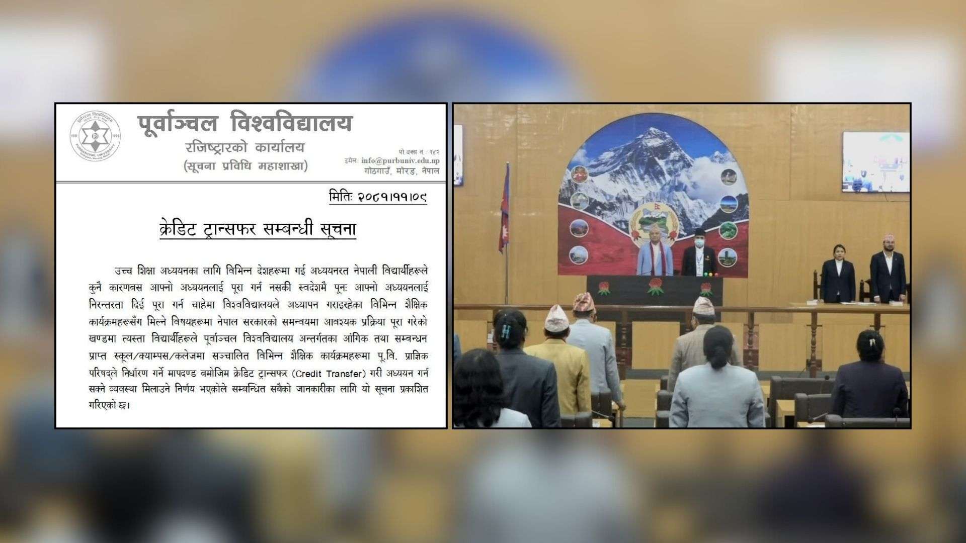 विश्वविद्यालयले सूचना जारी गर्दै विदेशमा अध्ययन गर्न गएका विद्यार्थीहरूले अध्ययन पूरा नगरी फर्किएको अवस्थामा क्रेडिट ट्रान्सफर गरी पढाइने जनाएको हो । उच्च शिक्षाका लागि विभिन्न देशमा गएर विशेष कारणले अध्ययन पूरा नसकी फर्किनुपरेका विद्यार्थीहरूका क्रेडिट ट्रान्सर्फमर गरिने सूचनामा उल्लेख गरिएको छ ।