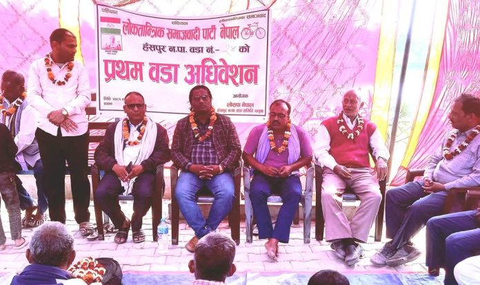 जनकपुर । धनुषाको हंसपुरस्थित पश्चिमबारी टोलमा लोकतान्त्रिक समाजवादी पार्टी नेपालको वैशाख २६ गते हुने राष्ट्रिय अधिवेशनको तयारीस्वरूप प्रथम वडा अधिवेशन सम्पन्न भएको छ ।