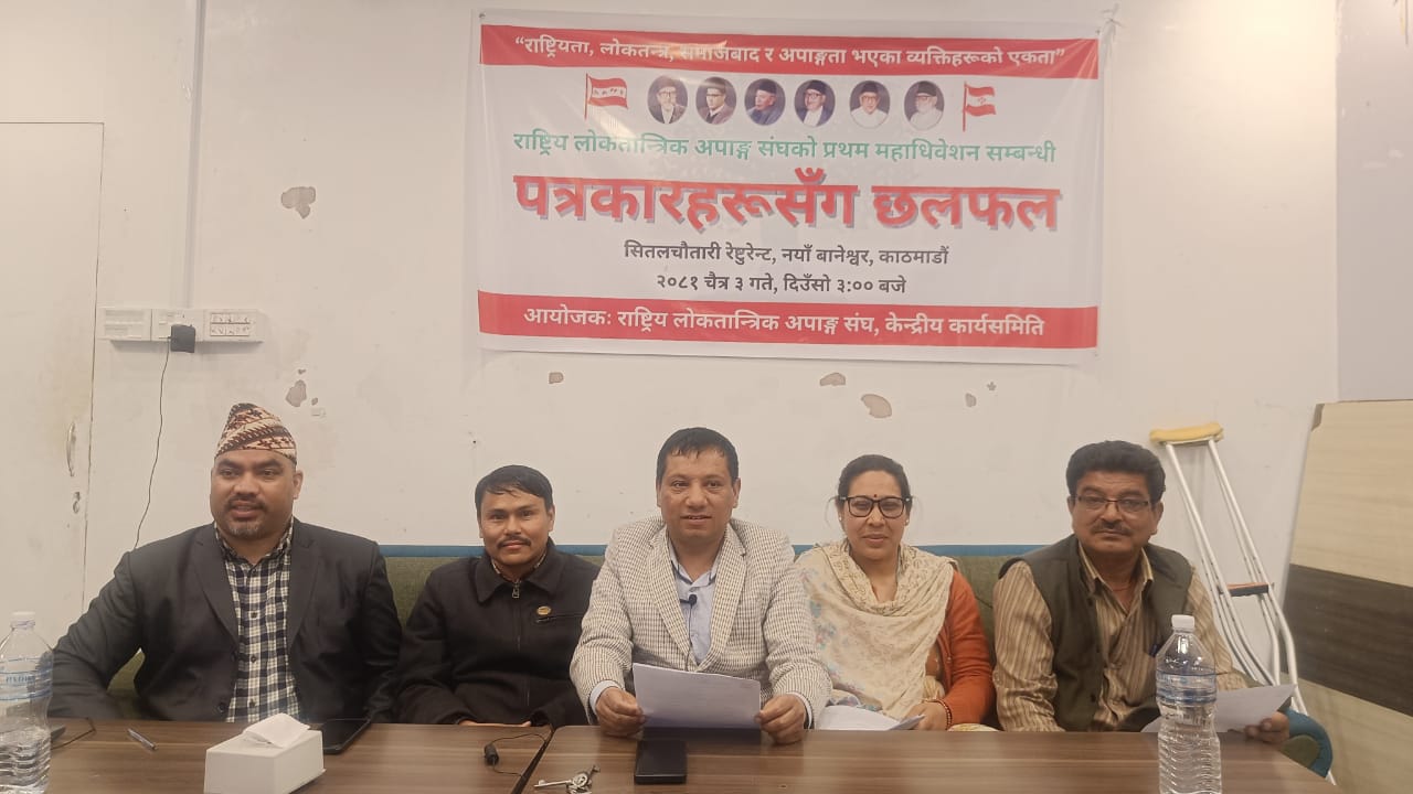 नेपाली कांग्रेसको भातृ संस्था राष्ट्रिय लोकतान्त्रिक अपाङ्ग संघको ऐतिहासिक प्रथम केन्द्रीय महाधिवेशन यही चैत्र ८ र ९ गते पार्टी केन्द्रीय कार्यालय सानेपामा हुने भएको छ । यसका लागि सम्पूर्ण तयारी पूरा हुने चरणमा रहेको प्रचारप्रसार समिति संयोजक माधवप्रसाद चौलागाँईले जानकारी दिए ।