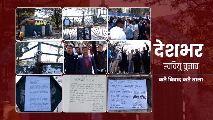 उम्मेदवारीपछि दुई उम्मेदवारहरूले विभिन्न माग राखेर निर्वाचन समितिको कार्यालयमा ताला लगाएका थिए । तर, अहिले कलेजको मूल गेटमै ताला लगाएका हुन् ।