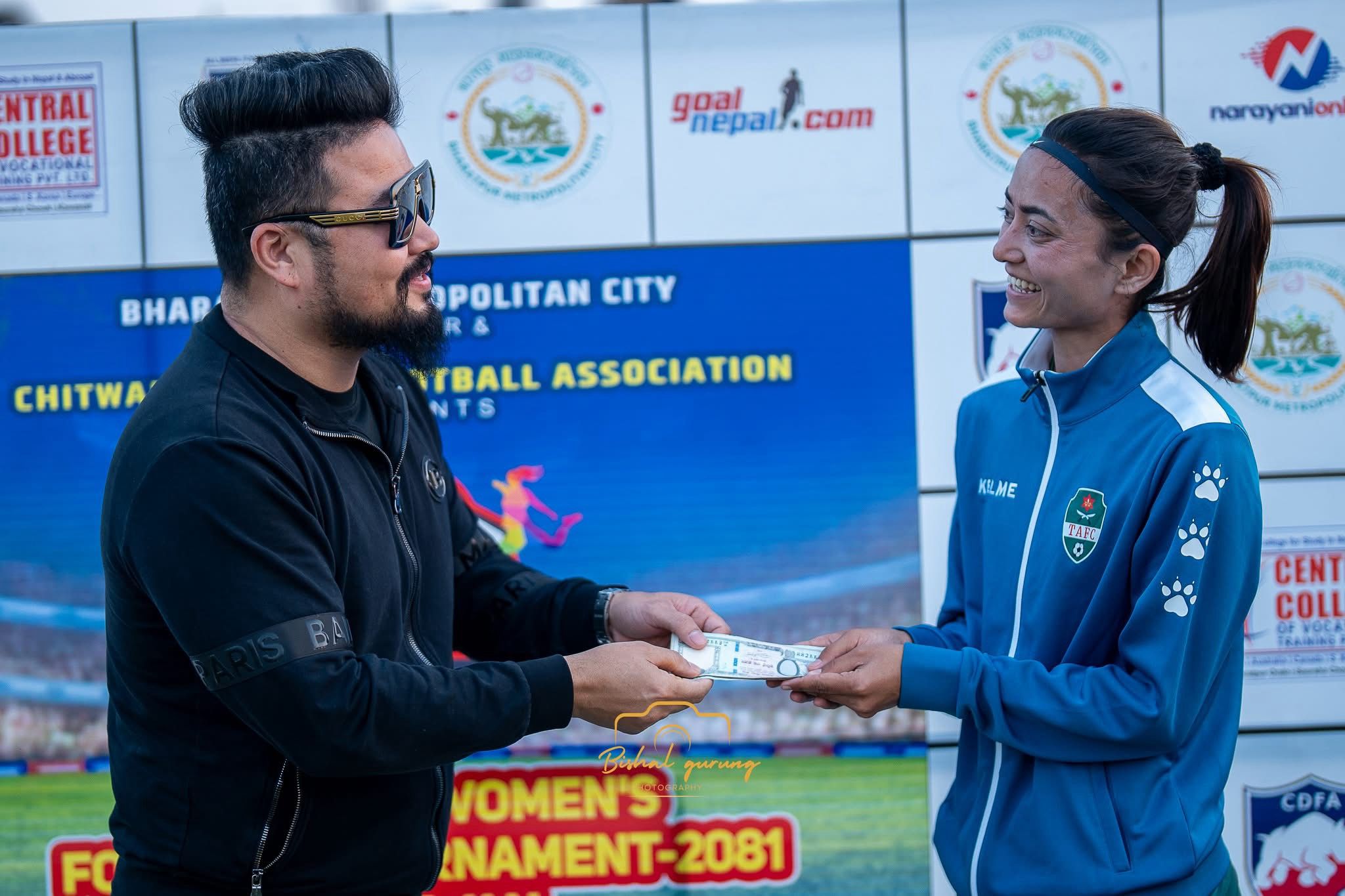 उक्त खेलको प्रमुख अतिथी एनआरएनए आईसिसिका उपमहासचिव प्रविन गुरुङले उक्त राष्ट्रिय महिला फुटबल प्रतियोगिताको सफलताको शुभकामना ब्यक्त गरे । चितवन स्थायी घर भइ कतारलाई कर्मभुमी बनाएर ब्याबसाय र सामाजिक कार्य गर्दै आएका गुरुङले महिला फुटबललाई सधै सहयोग गर्ने बताए । गुरुङले नेपालको खेलाडीहरुले घरको खाना खएर यत्तिको खेलेकोमा प्रसंसा गरे ।