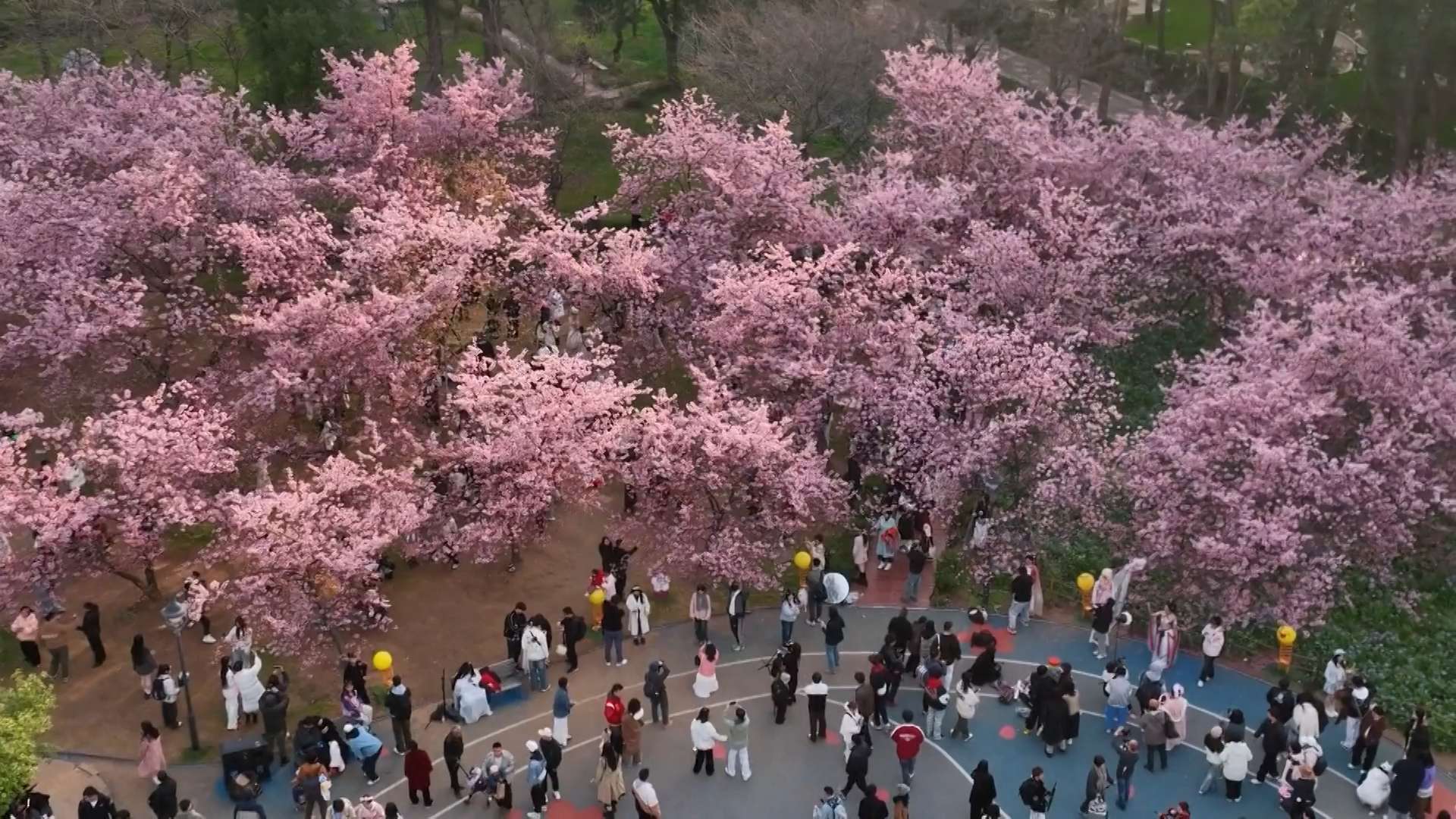 चेरी फूलहरू वुहान शहरको लागि प्रतिक मानिन्छन् । फूल फुल्ने मौसम सामान्यतया मार्चको मध्यदेखि अप्रिलसम्म रहन्छ।(सीसीटीभीप्लस)