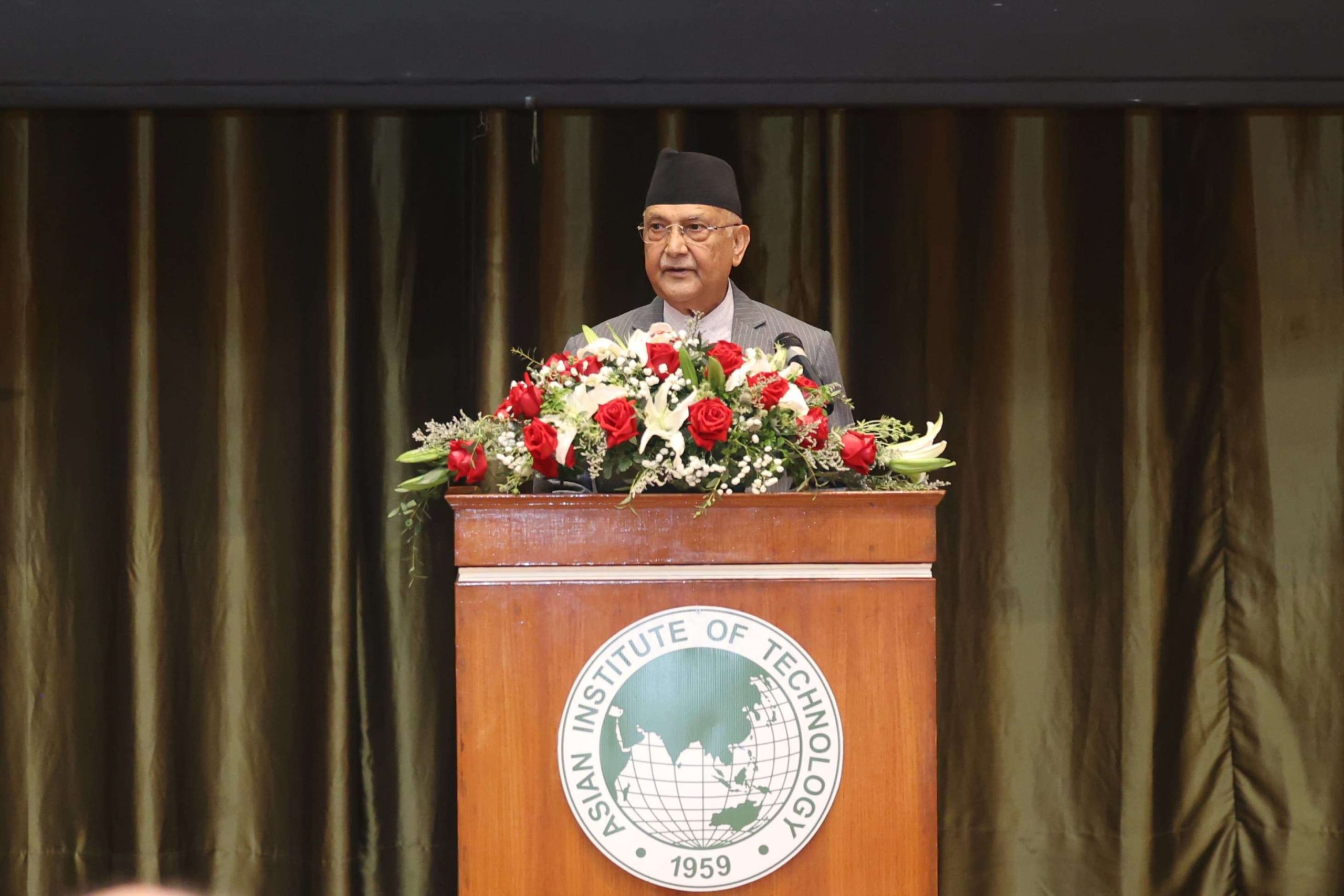 नेपाली अध्यापक र विद्यार्थीसहित सहभागी कार्यक्रममा प्रधानमन्त्री ओलीले आधुनिक कृषिको विकास र २१ औँ शताब्दीको मानवनीय जनशक्तिको उत्पादनमा जोड दिँदै एआइटिबाट उत्पादिन जनशक्तिले नेपालको जलस्रोतलगायत विकासका क्षेत्रमा योगदान दिने विश्वास पनि व्यक्त गरे ।