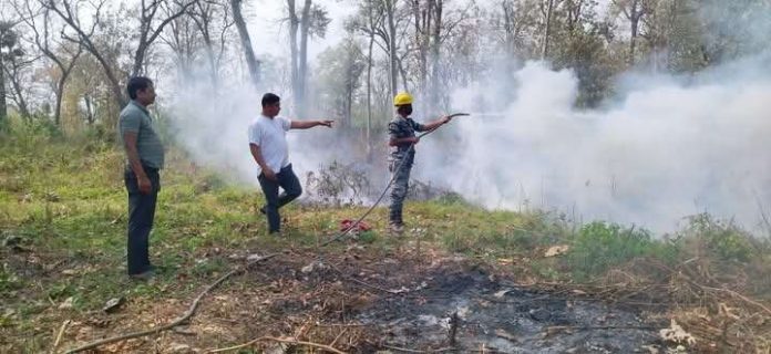 चिम्नीटोल र डाबरी टोलको नजिकमा रहेको वनमा डढेलो लागेको थियो । उनका अनुसार सामुदायिक तथा साझेदारी बन संगै जोडिएको बस्ती नै जोखिममा परेपछी शनिबार दिउँसो वरुण यन्त्र (दमकल) को सहयोगमा डढेलो नियन्त्रणमा लिइएको हो ।