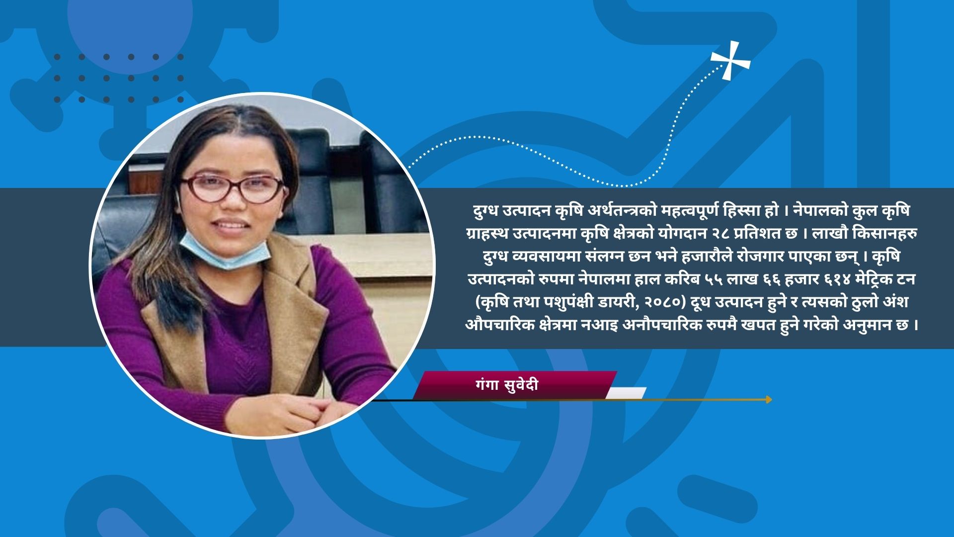 दुग्ध उत्पादन कृषि अर्थतन्त्रको महत्वपूर्ण हिस्सा हो । नेपालको कुल कृषि ग्राहस्थ उत्पादनमा कृषि क्षेत्रको योगदान २८ प्रतिशत छ । लाखौ किसानहरु दुग्ध व्यवसायमा संलग्न छन भने हजारौले रोजगार पाएका छन् । कृषि उत्पादनको रुपमा नेपालमा हाल करिब ५५ लाख ६६ हजार ६१४ मेट्रिक टन (कृषि तथा पशुपंक्षी डायरी, २०८०) दूध उत्पादन हुने र त्यसको ठुलो अंश औपचारिक क्षेत्रमा नआइ अनौपचारिक रुपमै खपत हुने गरेको अनुमान छ ।