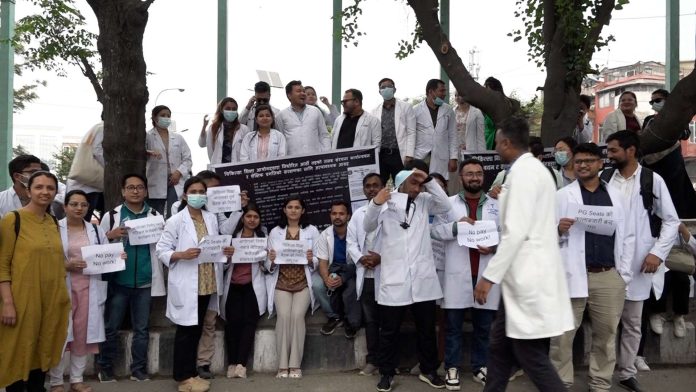 प्रदर्शनकारीहरुले ‘स्वास्थ्य शिक्षामाथिको चरम व्यापारीकरण नियन्त्रण गर, पीजी सिटको कालोबजारी बन्द गर’ जस्ता प्लेकार्ड बोकेका छन् ।