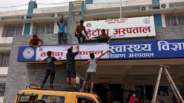 हेटौंडा । मकवानपुरको एकमात्र सरकारी अस्पताल हेटौंडा अस्पताललाई मदन भण्डारी स्वास्थ्य विज्ञान प्रतिष्ठानमा गाभ्न नहुने भन्दै हेटौंडा अस्पताल बचाउँ तथा सुधार अभियान समितिले अस्पतालको बोर्ड मेटाइदिएको छ ।
