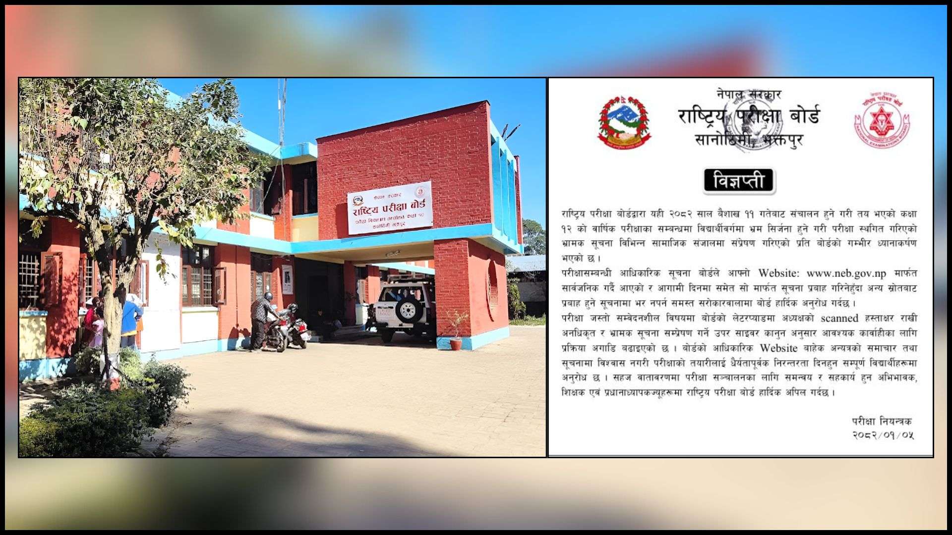 परीक्षा जस्तो सम्वेदनशील विषयमा बोर्डको लेटरप्याडमा अध्यक्षको हस्ताक्षर राखी अनधिकृत र भ्रामक सूचना सम्प्रेषण गर्ने उपर साइबर कानुन अनुसार आवश्यक कारवाहीका लागि प्रक्रिया अगाडि बढाइएको छ ।