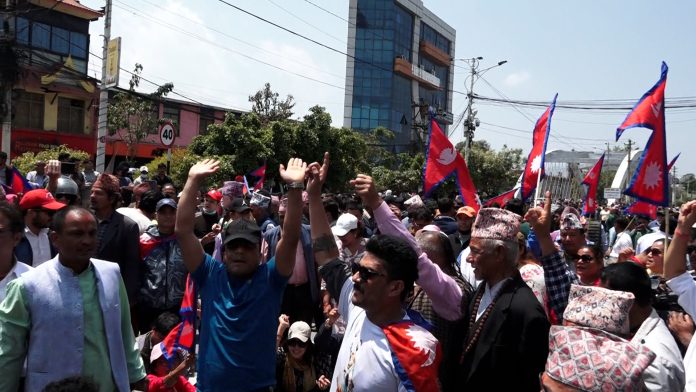 प्रदर्शनमा उत्रिएका राष्ट्रिय प्रजातन्त्र पार्टी (राप्रपा)का नेता तथा कार्यकर्ताहरु सिंहदरबार केन्द्रित भएका छन् ।