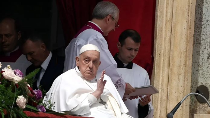 गत महिना पाँच सातासम्म अस्पतालमा भर्ना भएर फिर्ता भएका उनी आइतवार ह्वीलचेअरमा बसेर सेन्ट पिटर्स बसिलिकामा उपस्थित भीडलाई सम्बोधन गर्दै शुभकामना दिएका थिए ।