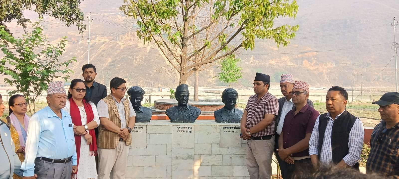 मन्थलीको सहिद गंगालाल, पुष्पलाल र साहित्यका सहिद कृष्णलालको सालिक रहेको तीनलाल पार्कमा कम्युनिष्ट नेताहरू भेला भएर उनीहरूको प्रतिमामा पुष्पगुच्छा चढाइ सम्मान प्रकट गरेका हुन् ।