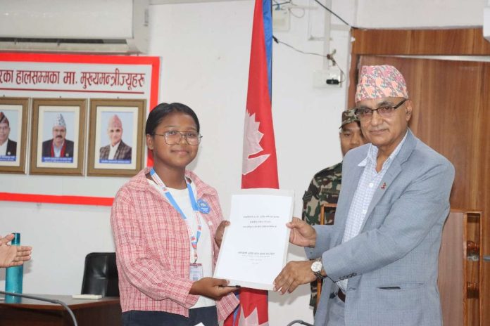 सुर्खेत । कर्णाली प्रदेशका मुख्यमन्त्री यामलाल कँडेलले सानै उमेरमा राजनीतिमा नलाग्न बालबालिकालाई सुझाव दिएका छन् । कर्णाली प्रदेश स्तरीय बाल सञ्जालले बुझाएको ज्ञापन पत्र बुझ्दै मुख्यमन्त्री कँडेलले राजनीतिबारे जानकारी लिए पनि राजनितीमा बुझेर मात्र लाग्न सुझाव दिएका हुन् । ‘राजनीतिबारे बुझ्नुहोला, ज्ञान लिनु होला, तर सानै उमेरमा राजनीति नगर्नु होला’ उनले भने, ‘यो उमेरकै तपाईहरुलाई राजनीति गर्नुस् त भन्दिन् तर राजनीति गर्ने बेला बुझेर मात्र गर्नुहोला ।’ राजनीति अधिकारको खोजीको यात्रा भएको उनको भनाई छ ।