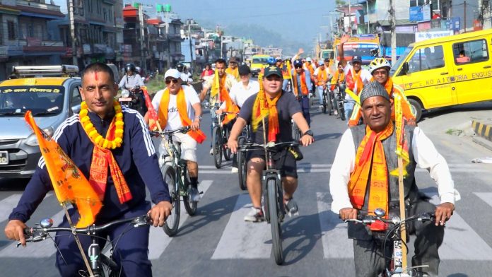 पोखरा । ऐतिहासिक श्रीगण्डकी शत (सय) कुण्डीय गायत्री कोटिहोम विराट् ज्ञान महायज्ञको तयारी स्वरुप साइकल र्यालीको आयोजना गरिएको छ ।