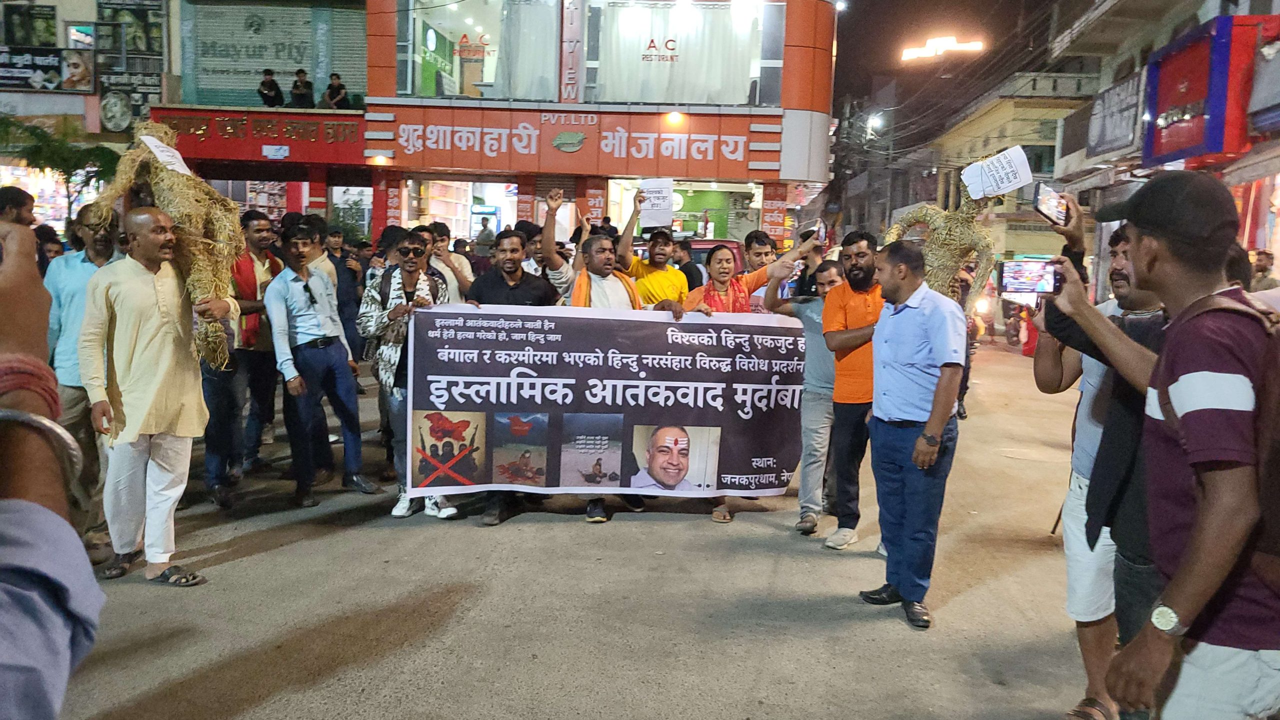 उनीहरुले आतंककारी मुस्लिम भगाउ देश बचाउ, जेहादी आतंकबादी मुर्दावाद, इस्लामिक जेहादी मुर्दाबाद लगायतका नारा लगाएका छन् । र्याली पश्चात उनीहरुले इस्लामिक आतंकबादीको पुतलासमेत जलाएका छन् ।
