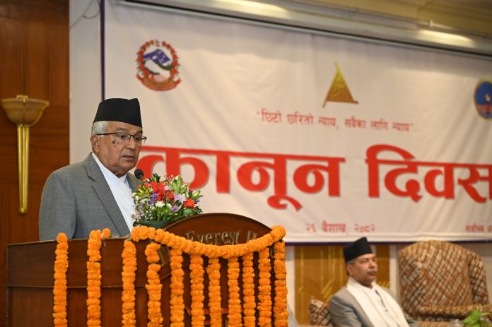 राष्ट्रपति रामचन्द्र पौडेलले नेपालको संविधानले संघीय लोकतान्त्रिक गणतन्त्र, नागरिक स्वतन्त्रता, मौलिक अधिकार एवम् न्यायपूर्ण समाज निर्माणमा न्याय र कानून जगतको महत्वपूर्ण दायित्व रहेको बताएका छन् ।