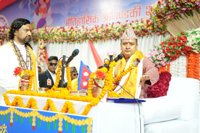कोटिहोम विराट ज्ञान महायज्ञमा शनिवार वाल्मीकि श्री राम कथा वाचक आचार्य पंराकुशजीको विदाई गरेसँगै आइतबार वाचन प्रवीण पोखरेलको प्रवचन सुरु भएको हो ।