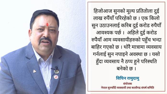 हिजोआज सुनको मूल्य प्रतितोला दुई लाख रुपैंयाँ परिरहेको छ । एक किलो सुन उठाउनलाई करिब दुई करोड रुपैयाँ आवश्यक पर्छ । अहिले दुई करोड रुपंैयाँ आम व्यवसायीहरुको पहुँच भन्दा बाहिर गएको छ । थोरै मात्रामा व्यवसाय गर्नलाई सुन नपाइने अवस्था छ । यसो हुँदा व्यवसाय नै ठप्प हुने परिस्थति बनेको छ ।
