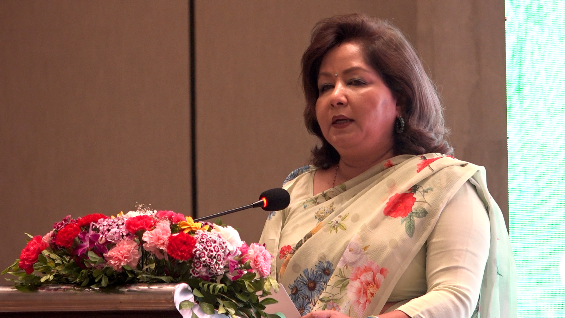 यस्तै, उनले नेपाललाई बलियो पूर्वाधारको आवश्यकता भएको भन्दै अन्य देशका साझेदारहरूको साथ प्राकृतिक जलवायु स्थिर गर्न र जीविकोपार्जन सहज गर्ने तर्फ लागेको बताईन् ।
