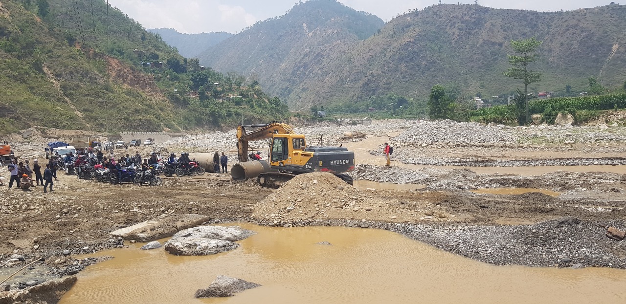 ‘दशैँमा यातायात सञ्चालन गराउनको लागि खोलाको बगरमा नै डाइभर्सन बनाएका थियौँ, अब यसलाई पहिलाको रोडको उचाइमा उठाएर वर्षामा पनि यातायात साधन चल्ने बनाउँछौँ’, उनले भने ।