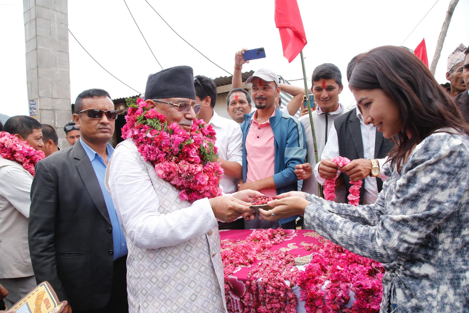 उनले भने, ‘पहिलो चोटी प्रधानमन्त्री हुँदा मध्यपहाडी लोकमार्ग मध्य पहाड र हिमालमा बस्ने जनताको हितलाई विचार गरेर, राष्ट्रिय एकतालाई सुदृढ गर्ने उद्देश्यद्वारा प्रेरित भएर, समृद्धिको नयाँ अभियान चलोस्, यस क्षेत्रबाट बसाइसराइको विकराल समस्या देखिएको छ, त्यसलाई रोक्न सकिन्छ भन्ने उद्देश्यले मैले नै प्रस्ताव गरेको हुँ । अहिले यो सम्पन्न हुँदैछ ।’