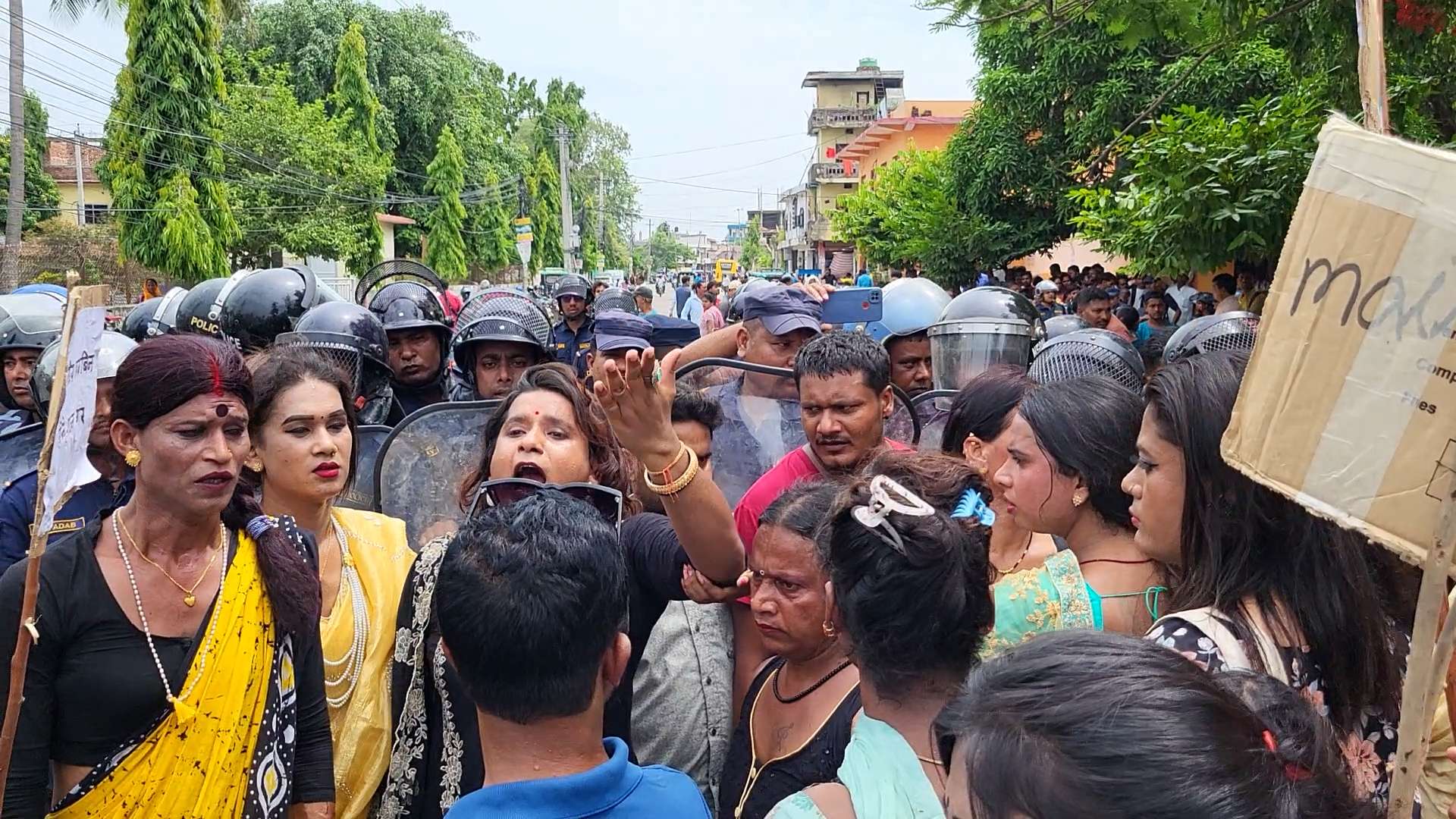 जनकपुर । जनकपुरधाममा यौनिक तथा लैङ्गिक अल्पसंख्यक (तेस्रो लिङ्गी र किन्नर)समुदायले विरोध प्रर्दशर्न गरेका छन् । उनीहरुले जिल्ला प्रशासन कार्यालय अगाडि विरोध गर्नुका साथै धर्नासमेत दिएका छन् ।