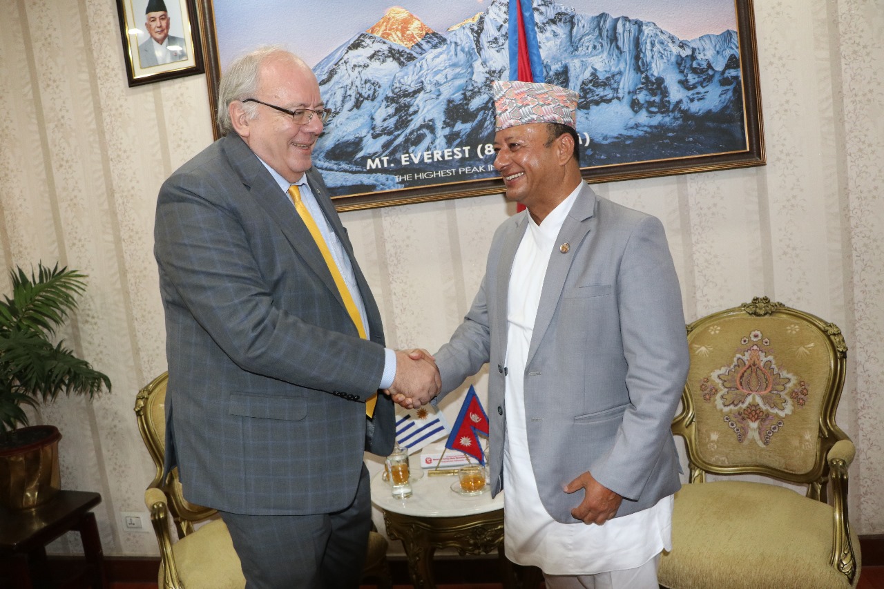 ऊर्जा, जलस्रोत तथा सिँचाइमन्त्री दीपक खड्कासँग नेपालका लागि उरुग्वेका गैरआवासीय राजदूत अल्बर्टो ए गुआनीले शिष्टाचार भेट गरेका छन् ।
