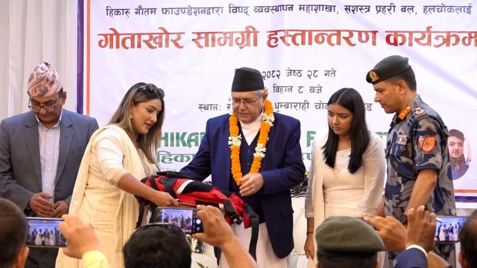 अमेरिकामा ज्यान गुमाएका हिकारु गौतमको स्मृतिमा निमार्ण भएको हिकारु गौतम फाउडेशनले आज शसस्त्र प्रहरी बल विपद व्यवस्थापन महाशाखा हलचोकलाई गोताखोरका लागि आवश्यक सामग्री हस्तान्तरण गरेको छ ।