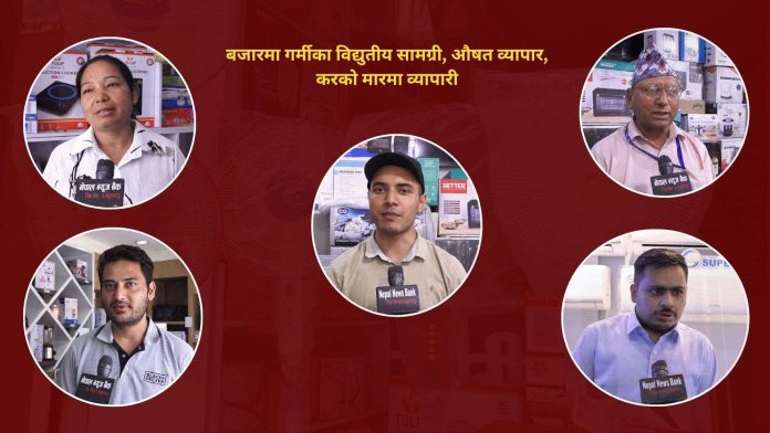 गर्मी मौसमलाई मध्यनजर गरी व्यवसायीहरूले बजारमा विभिन्न प्रकारका फ्यान, कुलर र एसीहरू ल्याएका छन् । तर व्यापार सन्तोषजनक नभएको व्यावसायीको गुनासो छ ।